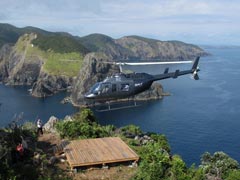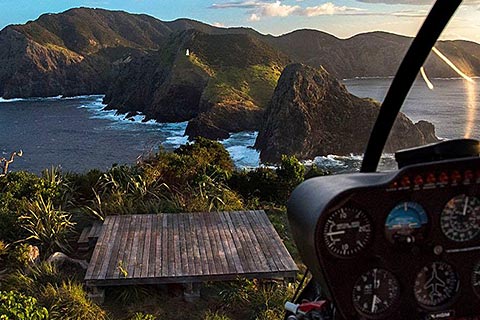 For many years visitors have come to the Bay of Islands to venture through this top New Zealand icon the Hole in the Rock on boats, we have flown them over it thousands of times, and it has been admired by many for its unique appearance and history. Now it can be experienced up close and on foot, landing by helicopter on our newly built helipad on top of the island. Visitors have the option to land on the island with a brief stop on the viewing platform or be hosted on the island by a local Maori Guide, who will share the islands’ unique history and its cultural and ecological significance. Very few people in history, including Maori, have ever ventured on the island in this way before. Being surrounded by steep cliffs (over 150 metres high) and stunning scenery looking towards Cape Brett and its surrounds, this unique landing location will no doubt appeal to the adventurous.