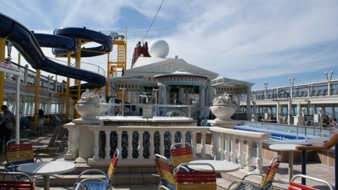 Setelah mengenakan pakaian renang dan membawa buku bacaan yang siap dilahap, kami berdua ingin mencoba kenikmatan fasilitas di Parthenon Pool.  Di sekitar area ini, kami bisa menyegarkan badan dengan berenang, berendam dalam Jacuzzi, atau sekedar menghangatkan tubuh di sekeliling kolam. Untuk urusan perut, The Taverna dan Café Gelato siap memuaskan kami. Tinggal menggesek cabin card kami, semua urusan akan diselesaikan nanti ketika akan mengambil passport kami kembali.